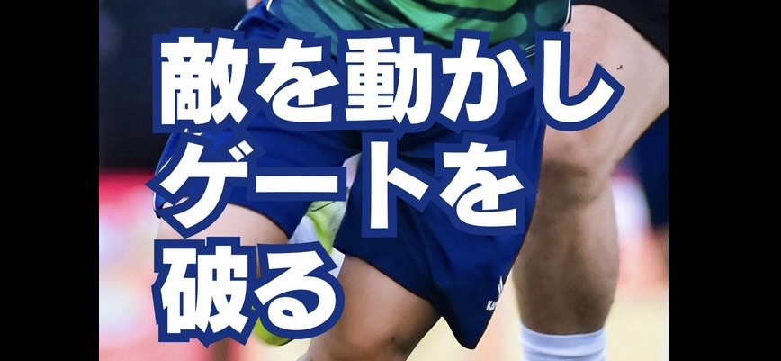 【ゲートの創出】 2人の挟み込みに対し、縦への仕掛けにより1人が食いつき、2人の間に「ゲート(門)」が開いた瞬間に、鋭いインサイドターンでその隙間を抜き去る。